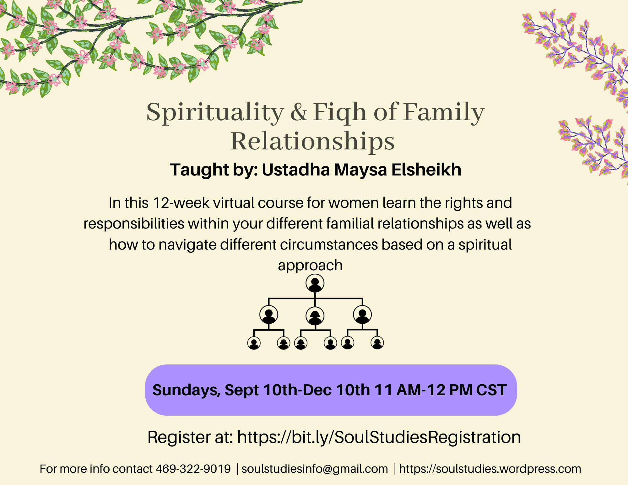 In this 12-week virtual course for ladies we will study the rights and responsibilities within different familial relationships as well as how to navigate difficult circumstances based on a spiritual approach.